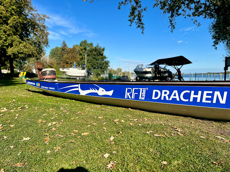 Das Drachenbootfahren hat bei RFT kabel als Firmensport schon eine längere Tradition und die bisherigen Erfolge der RFT-Kabeldrachen können sich durchaus sehen lassen. In vielen regionalen Wettkämpfen und Drachenboot-Cups belegte unser Team schon mehrfach erste Plätze. Die erste Ausfahrt mit dem „neuen Drachen“ fand nun bei allerschönstem Herbstwetter mit reichlich Sonnenschein statt. Na, wenn das mal kein gutes Omen ist! Wir wünschen Euch viel Spaß beim Training und hoffen auf eine andauernde, drachenstarke Erfolgswelle.