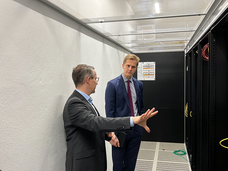 Bei einem Rundgang durch das RFT-Rechenzentrum informierte sich Staatssekretär Benjamin Grimm über die Vorteile des Brandenburgnetzes und dessen Bedeutung für die Datensicherheit von Unternehmen. Der Aspekt der hohen Netzsicherheit und die digitale Produktvielfalt der RFT kabel, seien für Unternehmen zunehmend relevant, so Grimm. Besonders beeindruckt zeigte er sich, vom Rundum- Service des regionalen Netzbetreibers. Denn die RFT kabel hat sich als ein starker Digitalisierungspartner für kleine und große Unternehmen in der Region etabliert. Angefangen beim Glasfasernetzausbau, über die Bereitstellung von Breitbandanschlüssen und die Versorgung mit Telekommunikationsdiensten, bis hin zu Business-Lösungen für die sichere Standortvernetzung, Cloud-Dienste, Server-Hosting, usw. umfasst das Portfolio der RFT kabel alles für erfolgreiche Digitalisierungsprojekte.