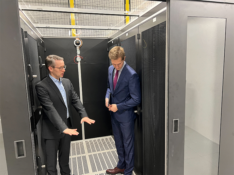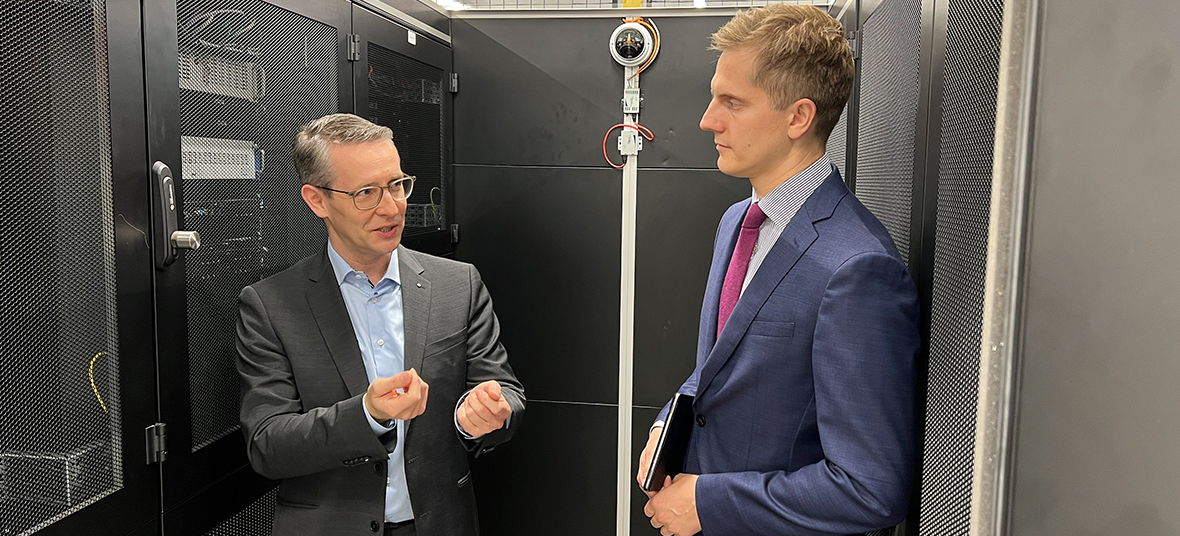 Bei einem Rundgang durch das RFT-Rechenzentrum informierte sich Staatssekretär Benjamin Grimm über die Vorteile des Brandenburgnetzes und dessen Bedeutung für die Datensicherheit von Unternehmen. Der Aspekt der hohen Netzsicherheit und die digitale Produktvielfalt der RFT kabel, seien für Unternehmen zunehmend relevant, so Grimm. Besonders beeindruckt zeigte er sich, vom Rundum- Service des regionalen Netzbetreibers. Denn die RFT kabel hat sich als ein starker Digitalisierungspartner für kleine und große Unternehmen in der Region etabliert. Angefangen beim Glasfasernetzausbau, über die Bereitstellung von Breitbandanschlüssen und die Versorgung mit Telekommunikationsdiensten, bis hin zu Business-Lösungen für die sichere Standortvernetzung, Cloud-Dienste, Server-Hosting, usw. umfasst das Portfolio der RFT kabel alles für erfolgreiche Digitalisierungsprojekte.